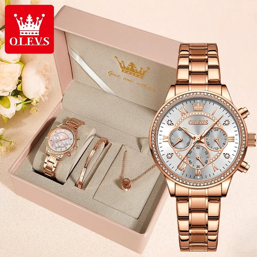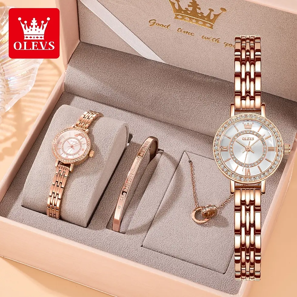 Original Ladies Olevs TY715 Rose Gold Watch Bracelet Necklace Set